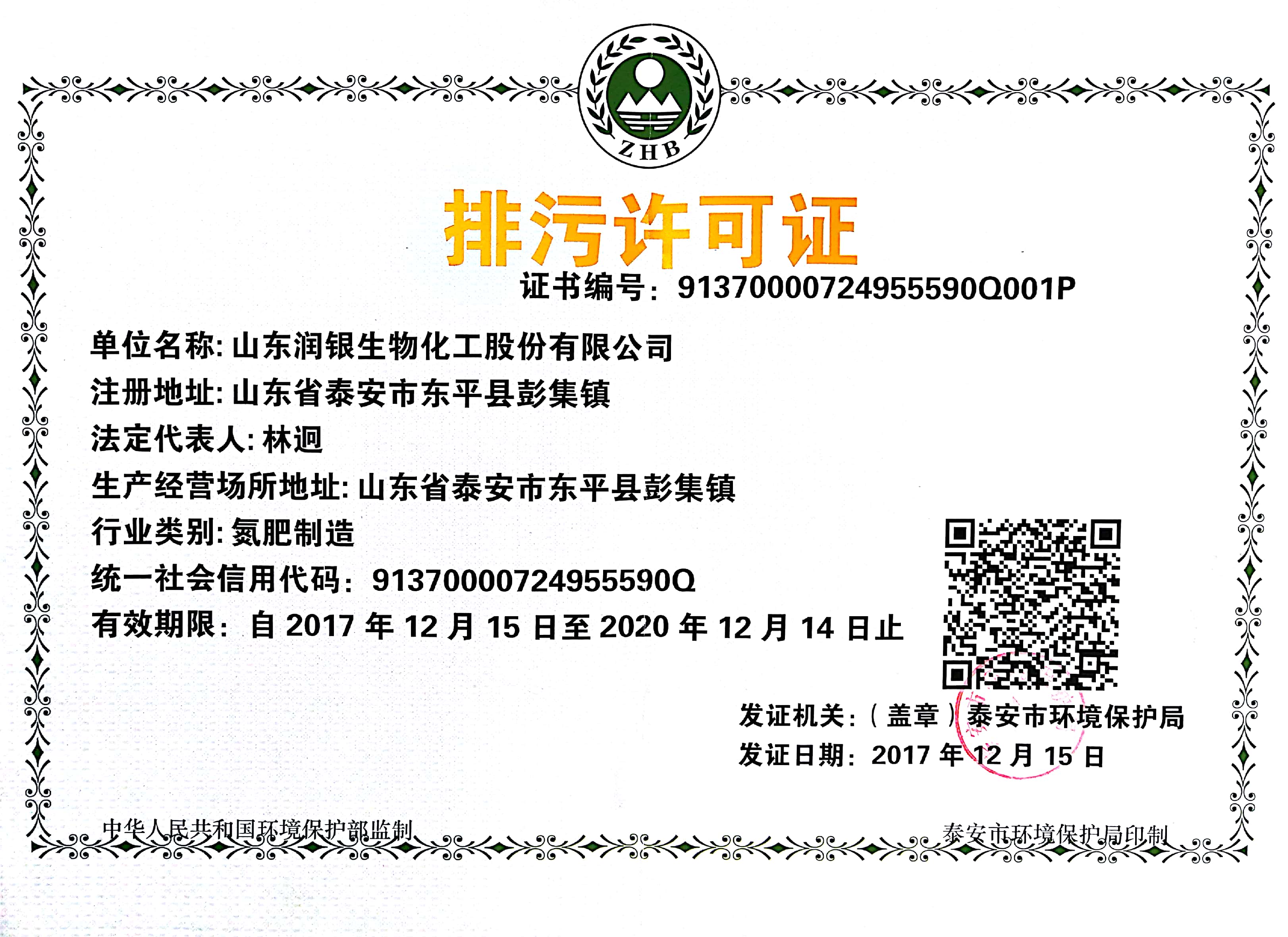 山东润银生物化工股份有限公司 环境信息公开 | |